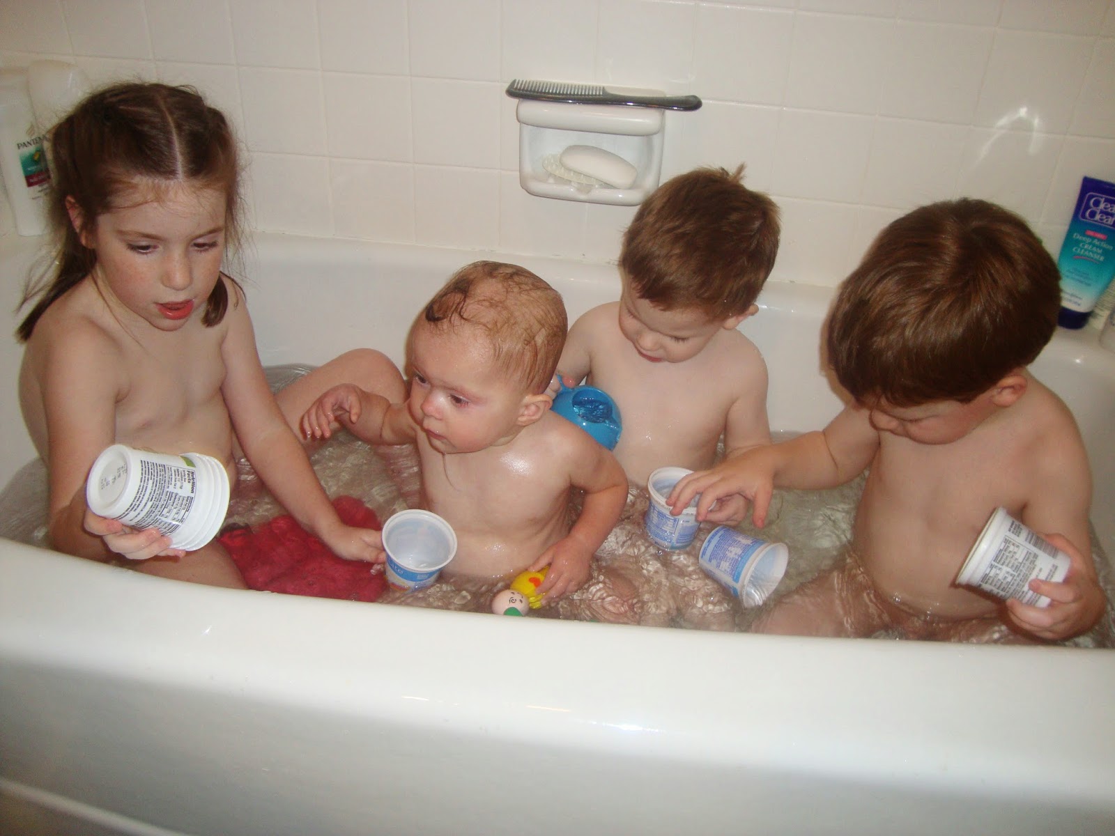 The week of family togetherness - of course - commences with COUSINS BATH! This combination of cousins in one bath has NEVER been done before.